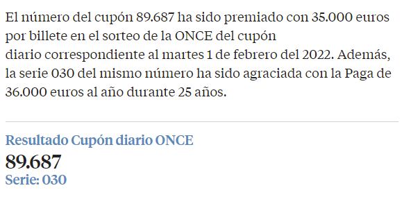 El día 1 de febrero revisamos el numero ganador del sorteo de la ONCE