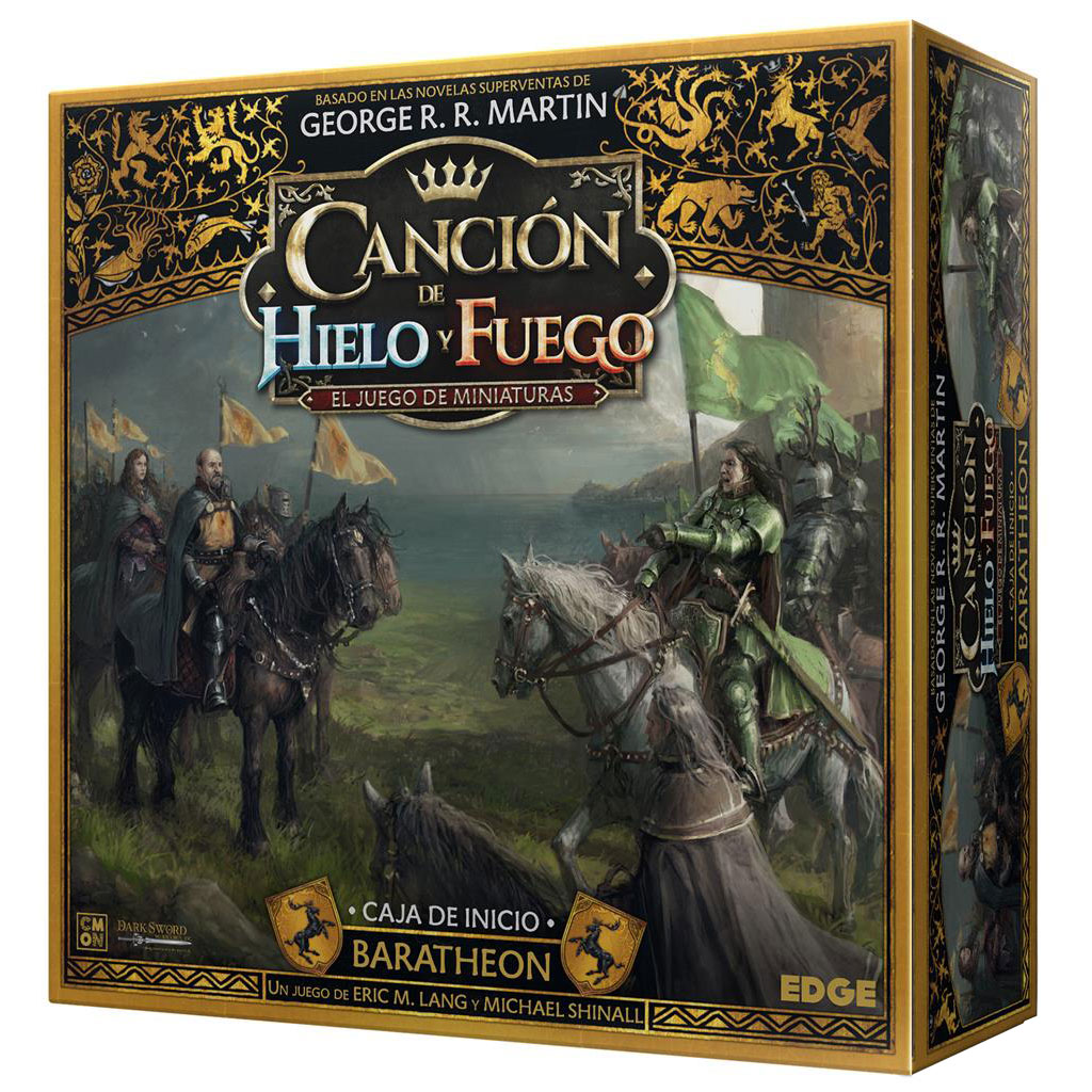 Canción de hielo y fuego: El juego de miniaturas lleva a la mesa de juego las batallas épicas, las intrigas políticas y los apasionantes personajes de las novelas mundialmente aclamadas por la crítica de George R. R. Martin. Utilizando miniaturas premontadas de gran calidad que se organizan y mueven en bandejas de unidad, lidera a los ejércitos y los héroes de las grandes Casas de Poniente en su lucha por el Trono de hierro en una variedad de modos de juego diferentes.