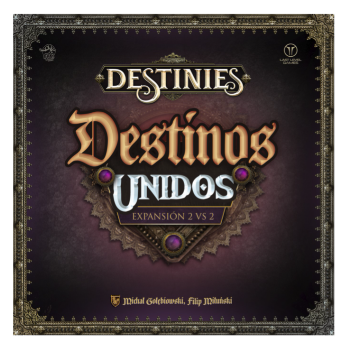 Destinos Unidos es una expansión para el juego Destinies. Esta caja incluye todo lo necesario para disfrutar los 11 escenarios del juego básico, la expansión Mar de Arena y la expansión Mitos y Folclore en una modalidad 2 contra 2.