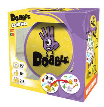Dobble un juego con más de 50 símbolos, 55 cartas, con uno, y solamente un símbolo idéntico entre cada carta. ¿Serás capaz de descubrirlo? Si nunca habéis jugado a Dobble, coge dos cartas al azar y ponlas boca arriba sobre la mesa a la vista de todos los jugadores. Buscad el símbolo idéntico en las dos cartas (misma forma y mismo color, sólo el tamaño puede variar). El primer jugador que encuentre este símbolo, lo nombra y roba dos nuevas cartas que pondrá sobre la mesa. Repetid esta operación hasta que todos los jugadores hayan entendido que siempre hay solamente un símbolo idéntico entre dos cartas ¡Y ya está! sencillo, ¿verdad? Pues ahora prepárate, porque Dobble contiene varios mini-juegos, cada cual más divertido e hilarante, aunque el objetivo siempre es el mismo: ser el más rápido, ya que todos los jugadores juegan a la vez.