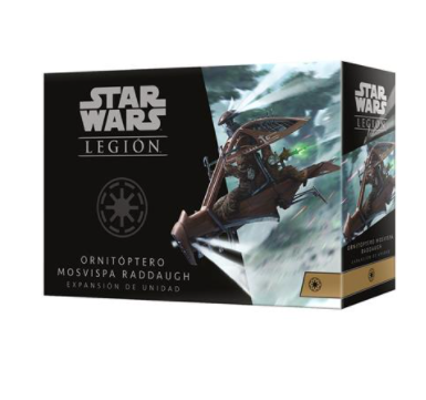 El ornitóptero Mosvispa Raddaugh es una compacta aeronave de reconocimiento usada para patrullar los densos bosques de árboles wroshyr que cubren Kashyyyk. Como la criatura que le presta su nombre, la Mosvispa es veloz, letal y posee un peligroso aguijón. Ya sea hostigando al enemigo con fuego de ballestas láser o arrojando certeras granadas, el ornitóptero es un adversario formidable. Este pack de expansión para STAR WARS: LEGIÓN contiene 1 miniatura de Ornitóptero Mosvispa Raddaugh esculpida con todo lujo de detalle, suficiente para desplegar una unidad Pesada, además de nuevas cartas.